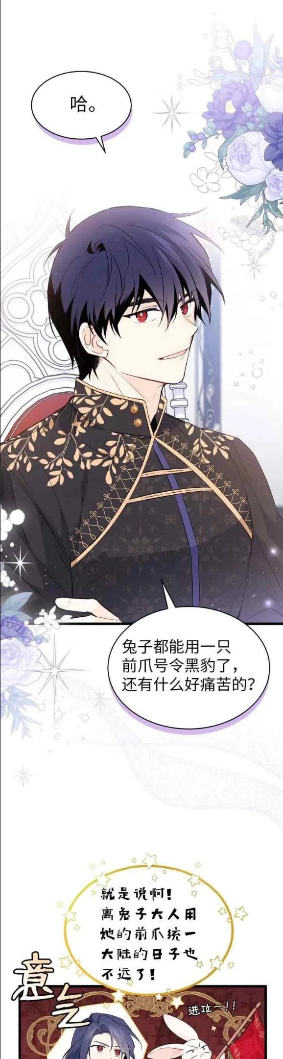 我的名字是薇薇·莱维安,来自有名望的莱维安家族。这个世界,,到目前为止,只有我18岁还没现人形人类。也许是因为害怕家族蒙羞,父母派人将我丢到了黑豹的领土上。然后,命运一般,我遇到了拥有红眼睛的黑豹,他的眼睛发着光。害怕被抓住吗?那你再哭大声点.——因为你的腿短,胖兔.——你是我捡来的.所以属于我。黑豹还不够,还有狮子、狼等等。在猛兽丛生的这个地方,身为兔子的我,能活得好吗?弱小的(?)小兔子薇薇的大冒险-现在开始!!